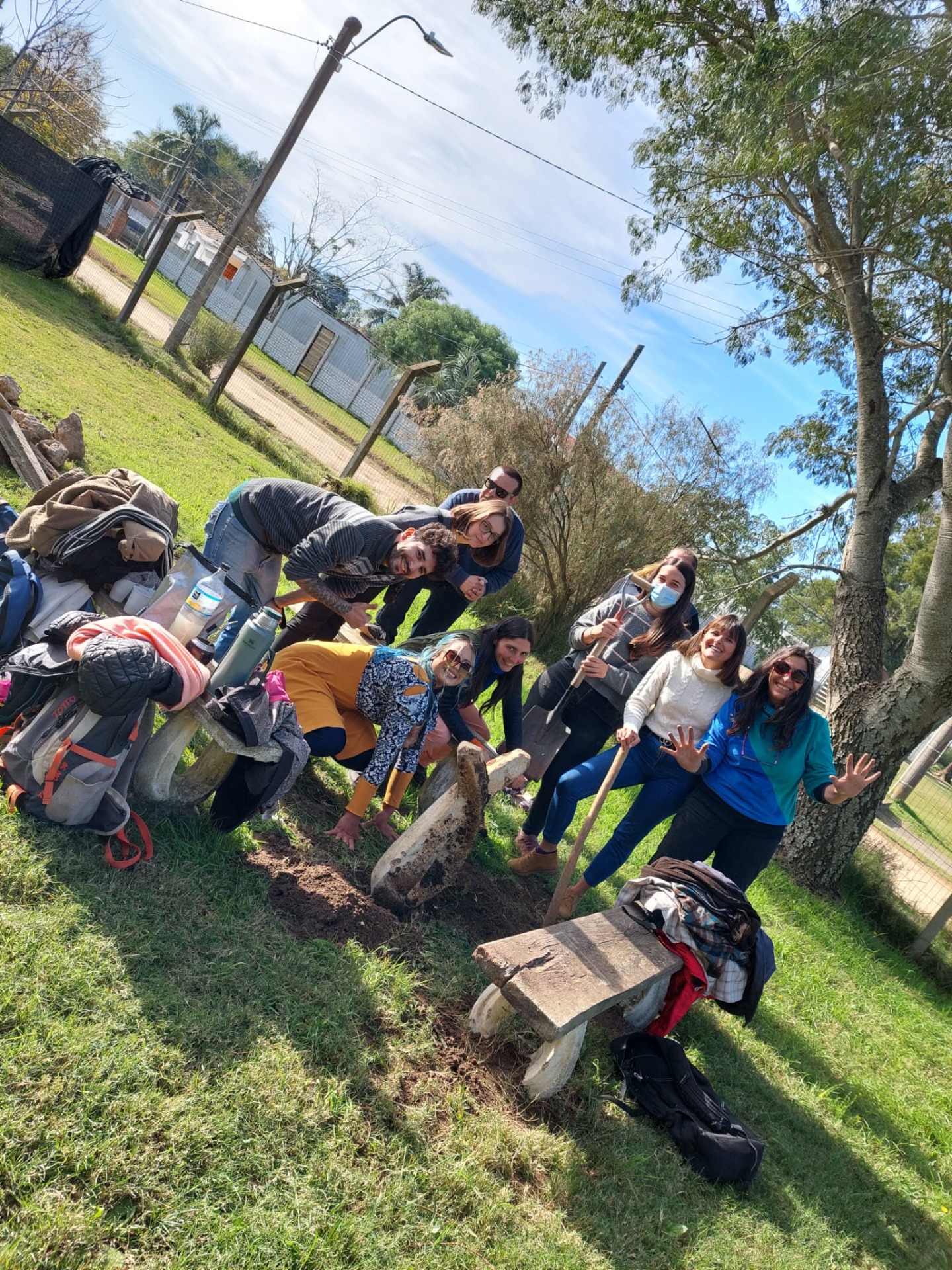 Alumnos y docente acomodando, limpiando y tomando lo que es útil para encaminar lo que será la creación de la Huerta en el instituto.