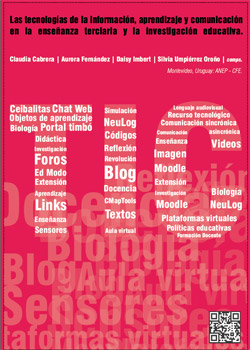 Esta es una publicación del Departamento Académico de Ciencias Biológicas, del Consejo de Formación en Educación de la Administración Nacional de Educación Pública. Se propone, coherente con los objetivos planteados por el Plan vigente, proporcionar oportunidad de difundir los trabajos, y motivar la reflexión de los lectores en torno a un tema que tiene especial relevancia en este momento. Las tecnologías de la información, el aprendizaje, la comunicación y la información, han llegado para quedarse. Estamos conminados a retomar esa variable en el aula de la formación inicial de docentes, y que ello repercuta también en los nexos que nos unen con la vida profesional de los egresados de nuestra casa de estudio. El libro que estamos presentando condensa las siguientes áreas temáticas: Reflexiones sobre el uso educativo de las TIC, experiencias de aula concretas que involucran una gama diversa de herramientas tecnológicas, las TIC y la didáctica de las ciencias. Proponemos desde esta presentación, una nueva categoría de contenidos: a los planteados originalmente, los conceptuales, procedimentales y actitudinales, se suman los tecnológicos. Se han colado tan rápidamente en el aula, y han sido incorporados tan eficientemente en los programas, permeando desde las competencias esperables en un docente, y resignificando poderosamente la actualización docente, que no podemos más que, por ahora, proponer esta categoría y ponerla a disposición de los lectores para comenzar a reflexionar y producir teoría en torno a ello.